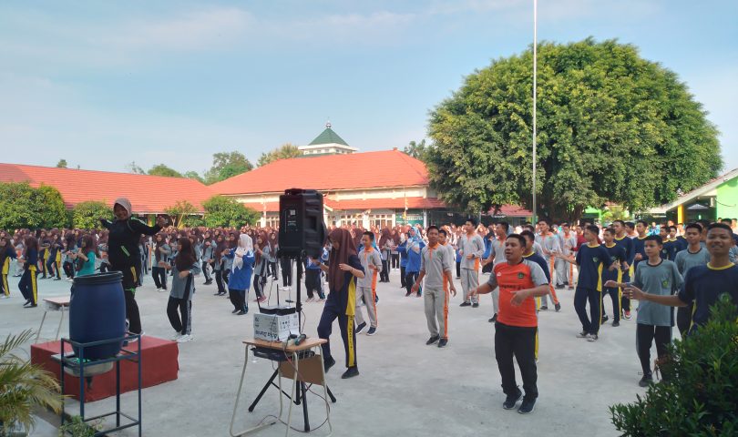 Kepala Kantor Kementerian Agama Kabupaten Ogan Ilir, H. M. Kholil Azmi mengikuti kegiatan senam bersama guru dan siswa-siswi MANSA OI di lapangan madrasah. Senam bersama kali ini dipandu oleh instruktur senam dari luar sekolah yang dengan semangat menginstruksikan gerakan senam kepada peserta senam yang dimulai dari pukul 07.00 WIB. Sabtu (17/9)