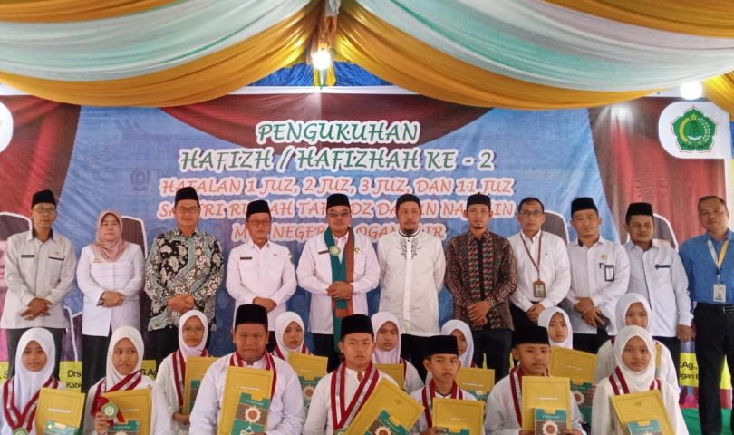 Kepala madrasah MAN 1 Ogan Ilir, Nely Septiana menghadiri acara pengukuhan hafiz/hafizah yang ke-2 bagi santri dan santriwati rumah tahfidz Darun Najihin MTsN 1 Ogan Ilir yang bertempat di lapangan MTs N 1 Ogan Ilir, Selasa (07/01). Adapun siswa/i yang dikukuhkan adalah siswa yang memiliki hapalan 1 juz, 2 juz, 3 juz dan 11 juz.