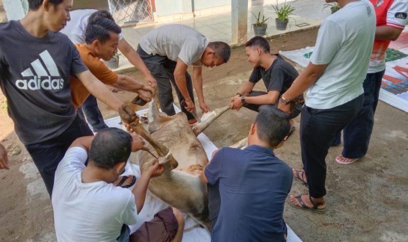 Bapak/ibu guru dibantu anggota OSIM MAN 1 Ogan Ilir bekerja sama dalam melakukan penyembelihan hewan ini yaitu satu ekor sapi dan satu ekor kambing yang kemudian akan dimasak oleh ibu guru dan nantinya akan dimakan bersama seluruh siswa-siswi MAN 1 Ogan Ilir. (RH/DN)