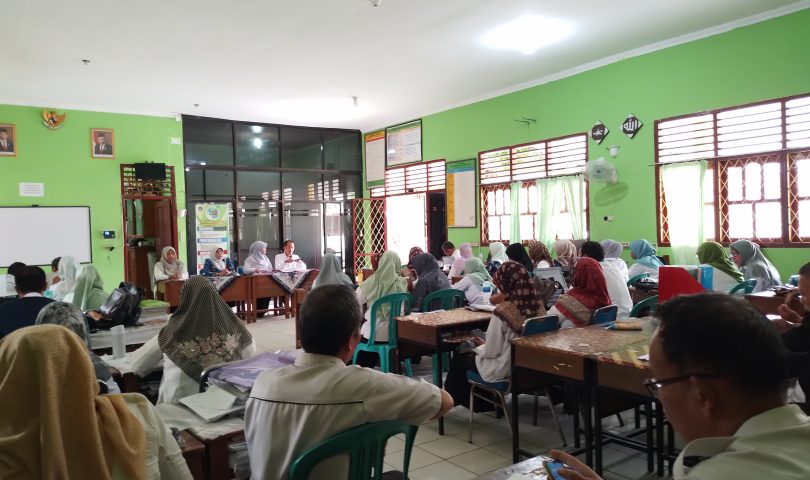 Kepala MAN 1 Ogan Ilir Nely Septiana didampingi oleh Waka Kurikulum Kayati, Waka Kesiswaan Renie Dasmi dan Plt. Kaur Tu Deni Setiawan memimpin rapat capaian kompetensi peserta didik dan pembagian raport TP. 2022/2023 diikuti oleh seluruh guru dan pegawai MANSA OI yang bertempat di ruang guru, Senin (19/12).