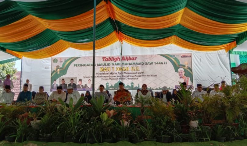 Madrasah Aliyah Negeri 1 Ogan Ilir melaksanakan kegiatan Tabligh Akbar dalam rangka memperingati Maulid Nabi Muhammad SAW 1444 H, Kegiatan ini digelar secara meriah dihalaman MAN 1 Ogan Ilir.