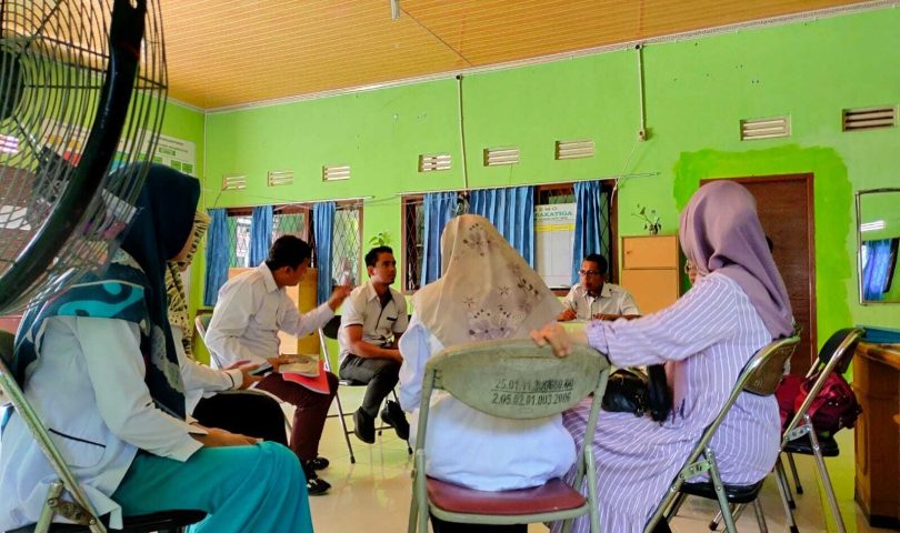 Guru mata pelajaran PAI dan Bahasa Arab Madrasah Aliyah Negeri 1 Ogan Ilir berkumpul di ruang BP untuk mengadakan rapat mengenai teknis pelaksanaan lomba dalam rangka menyambut 1 Muharram tahun 1444 H. Selasa (2/8).