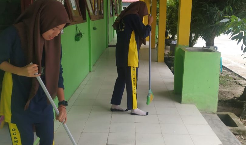 Renie Dasmi selaku waka Kesiswaaan MAN 1 Ogan Ilir mengajak seluruh siswa untuk melakukan pembersihan kelas dan linngkungan madrasah.