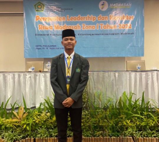 Siswa MAN 1 Ogan Ilir Dino Satrio yang merupakan ketua OSIM mewakili Sumatera Selatan dalam Kegiatan Penguatan Leadership Dan Karakter Siswa Madrasah zona 1 Tahun 2022 yang dilaksanakan mulai tanggal 5 s.d 7 September 2022 di Hotel Padjajaran, Bogor Jawa Barat.